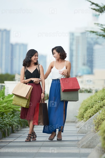 Веселые женщины с сумками для покупок