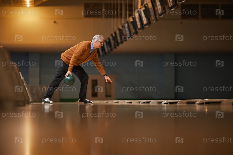 Человек, играющий в боулинг Side View Senior
