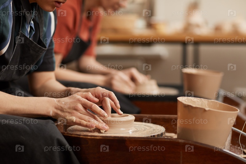 Close Up художники, делающие керамику на гончарном колесе