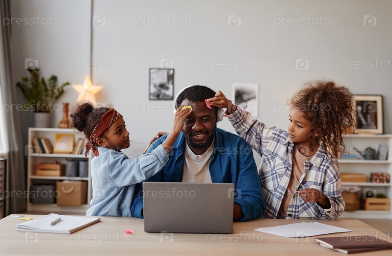 Дочери играют с отцом в онлайн-встрече
