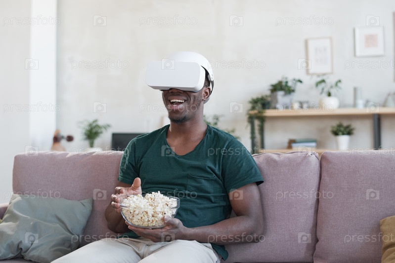 Мужчина смотрит фильм онлайн, сидящий на диване