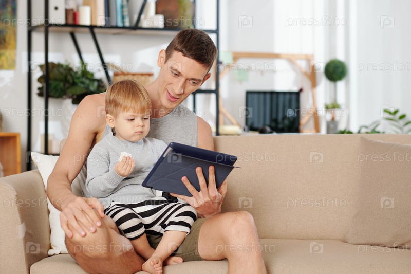 Семья, использующая планшетный компьютер