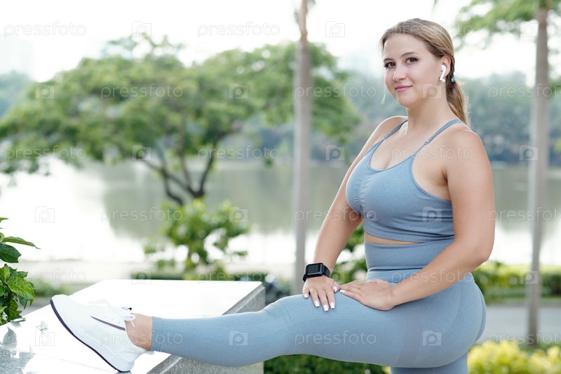 Плюс размер женщина растягивающая ногу