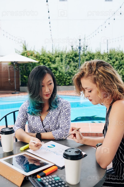 Деловые женщины обсуждают отчет