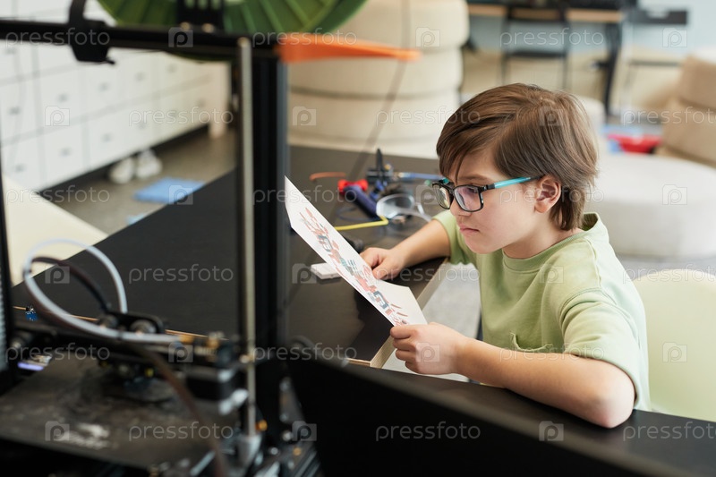 Милый мальчик, использующий 3D-принтер