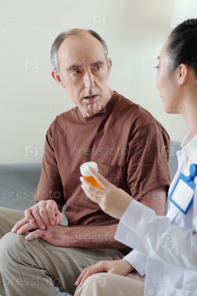 Мужчина обсуждает обезболивающее с врачом