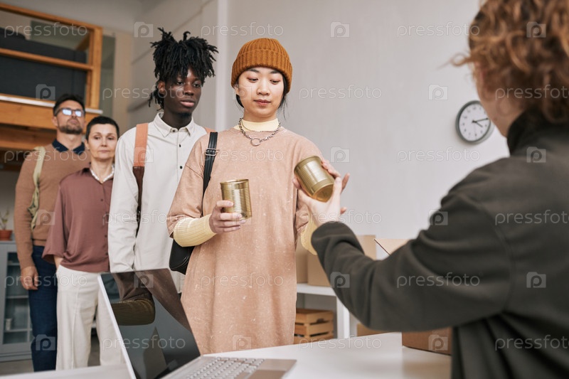 Люди, стоящие в очереди в Центре пожертвований
