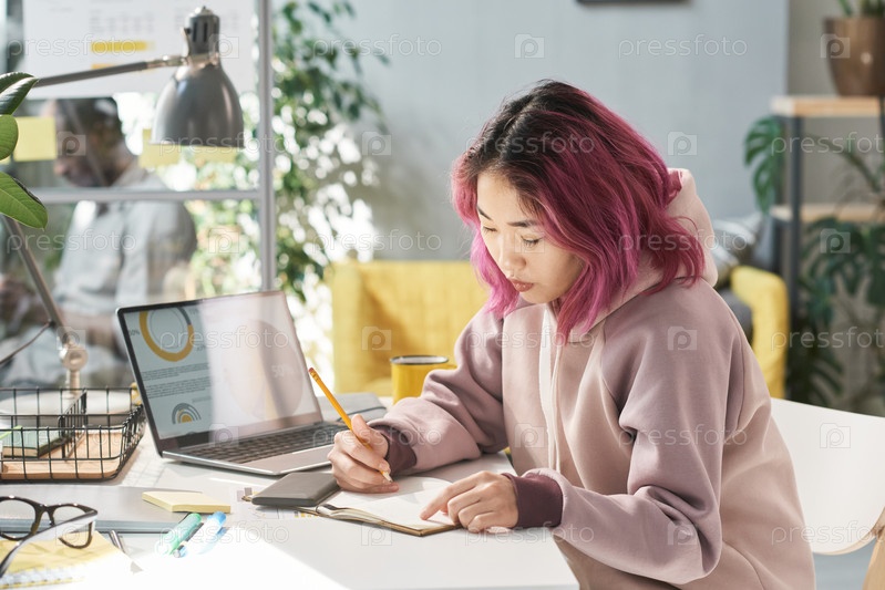 Женщина учится за столом