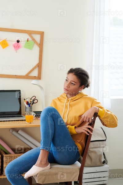 Смешанная раса подросток сидит на стуле