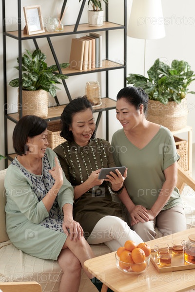 Старшие друзья смотрят забавные видео