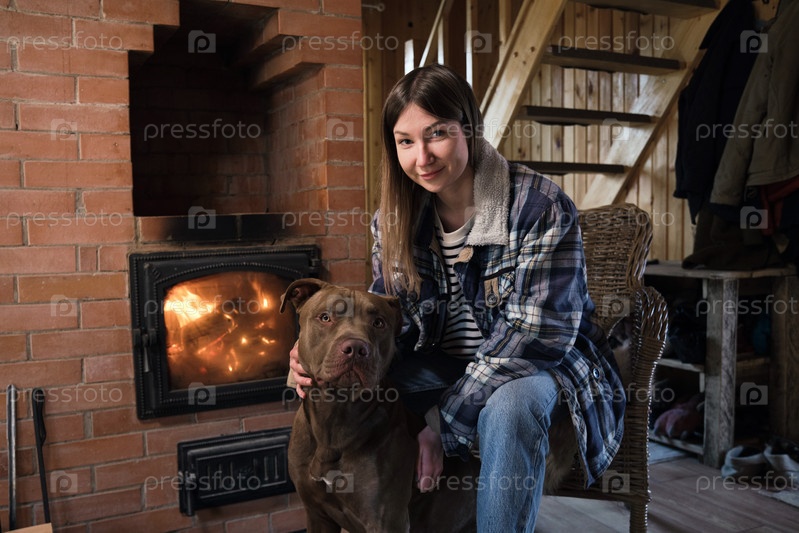 Женщина с собакой дома