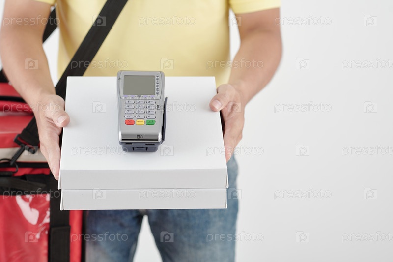 Курьерское холдинг пиццы и платежный терминал