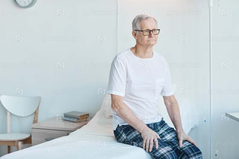 Старший человек в белой комнате больницы