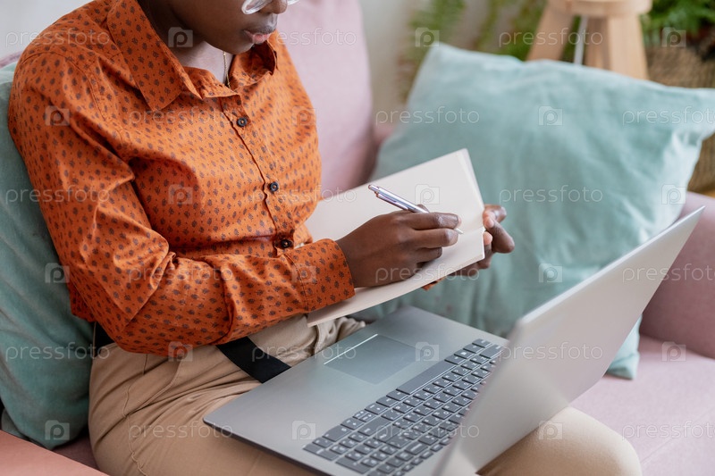 Руки молодого студента с ручкой делают лекционные заметки
