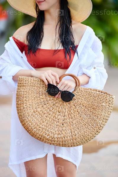 Молодая женщина с ржаной сумкой