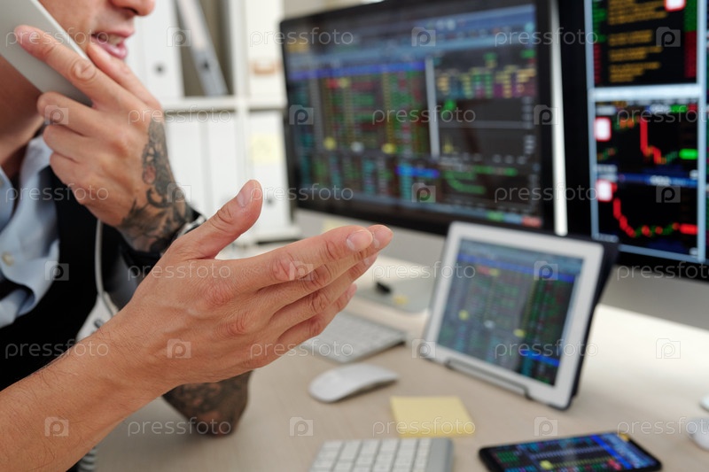 Трейдер разговаривает по телефону с клиентом