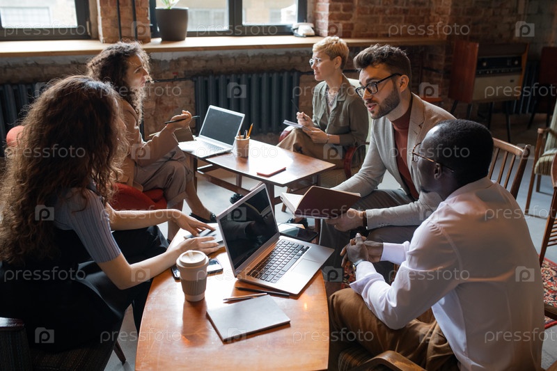 Две группы коллег обсуждают новые идеи