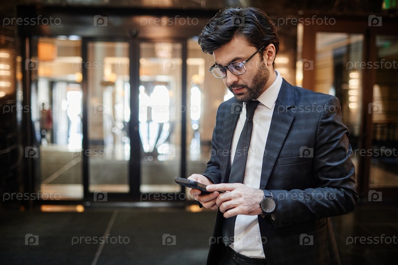 Ближневосточный бизнесмен, держащий смартфон