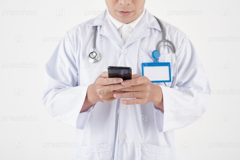 Общий врач, читающий текстовые сообщения