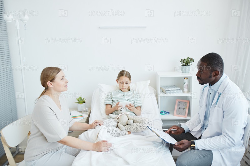 Афроамериканский врач разговаривает с родителем в больнице