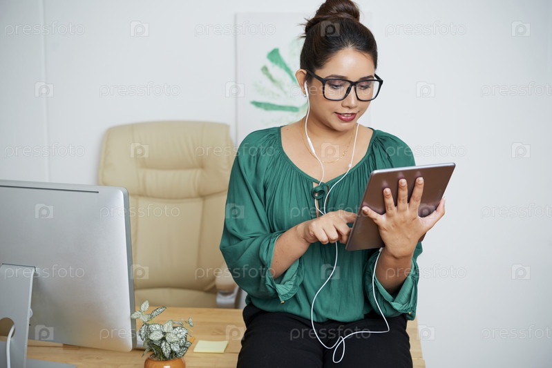 Деловая леди смотрит презентацию