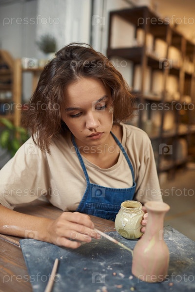 Концентрированный Поттер, работающий над дизайном вазы