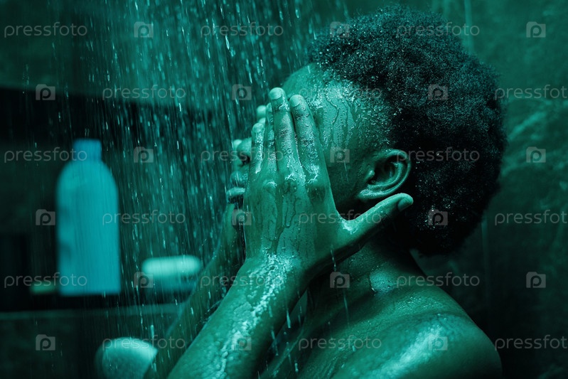Женщина принимает душ в темной ванной