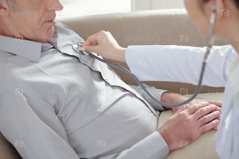 Доктор слушает дыхание пациента