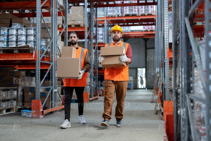 Два погрузчика в коробках с рабочей одеждой