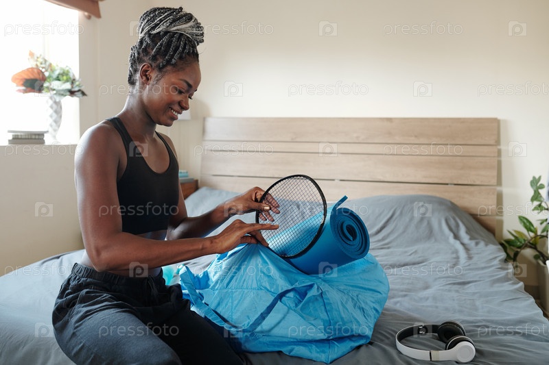 Женщина упаковывает спортивную сумку,