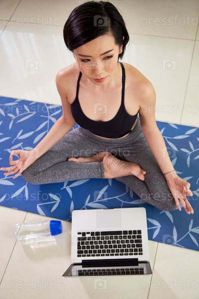 Женщина, следующая за руководством по медитации