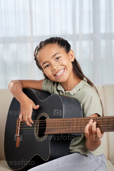 Маленькая девочка играет на гитаре
