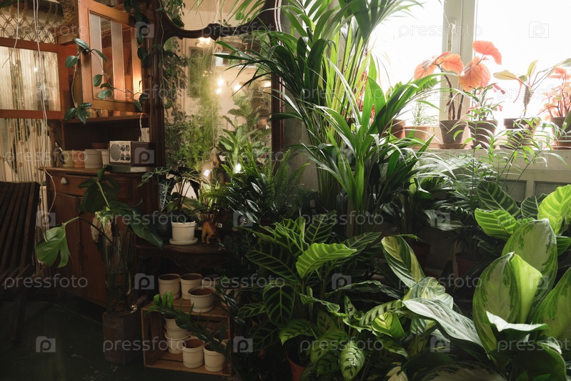 Домашняя комната с зелеными растениями в горшке