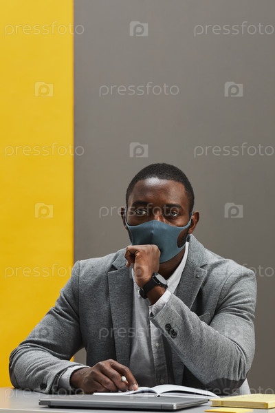 Афроамериканский бизнесмен, носящий маску Графический портрет