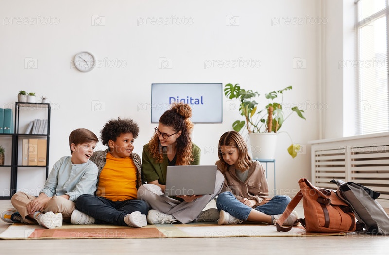 Группа детей, сидящих на полу с учителем