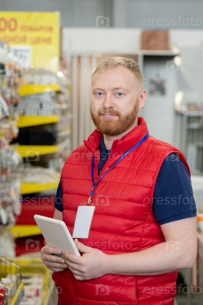 Уверенный в себе мужской менеджер по продажам, держащий планшет