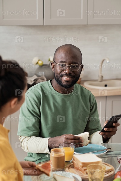 Пара завтракает дома