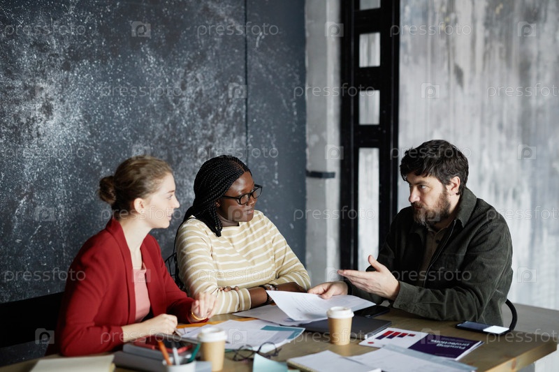 Менеджер по бизнесу разговаривает с коллегами