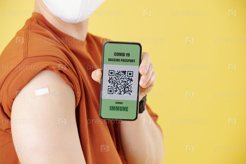Вакцинированный мужчина показывает QR-код