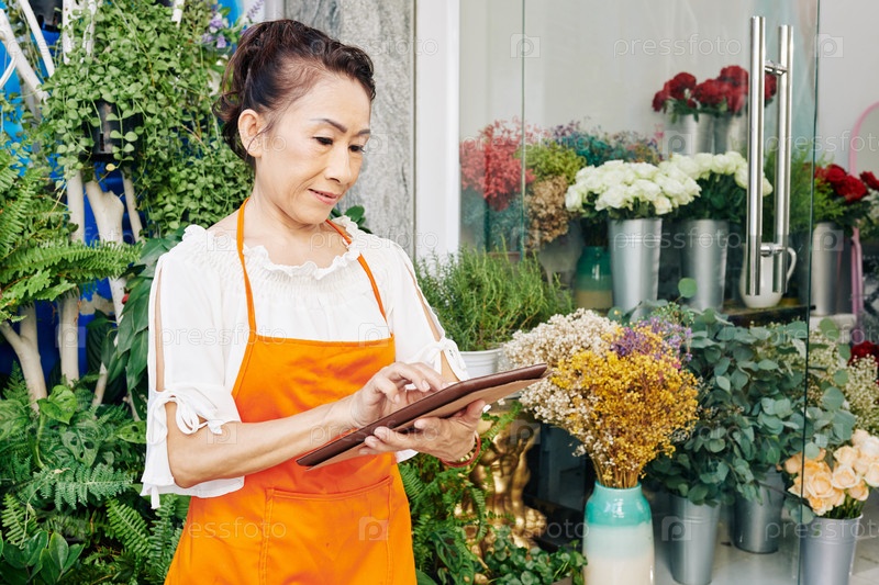 Цветочник проверяет заказы онлайн
