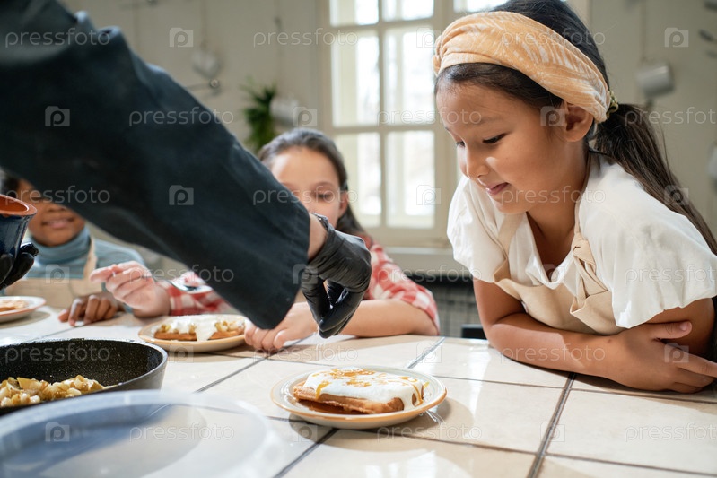 Девочка учится готовить сладкие вафли
