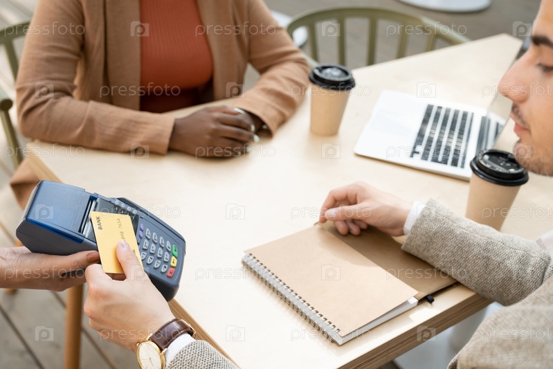 Мужчина платит за кофе