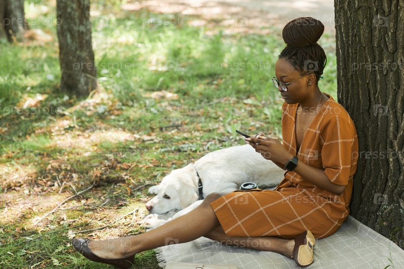 Молодая женщина в парке с собакой Черный
