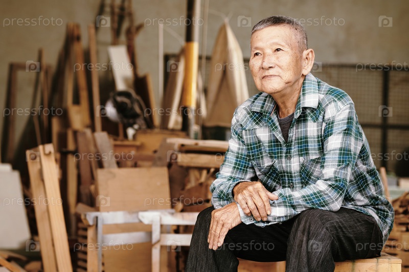 Мечтательный старший азиатский плотник