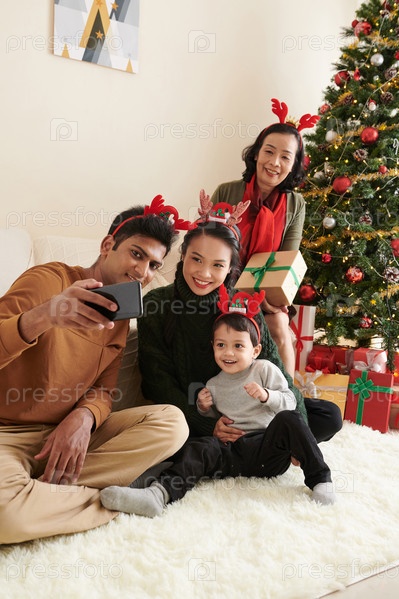 Семейная фотография на рождественской елке