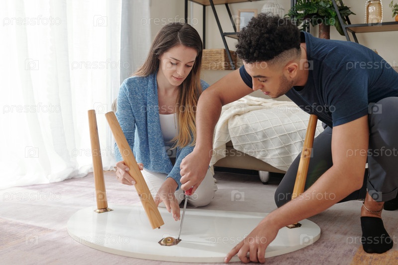 Пара собирает кофейный стол