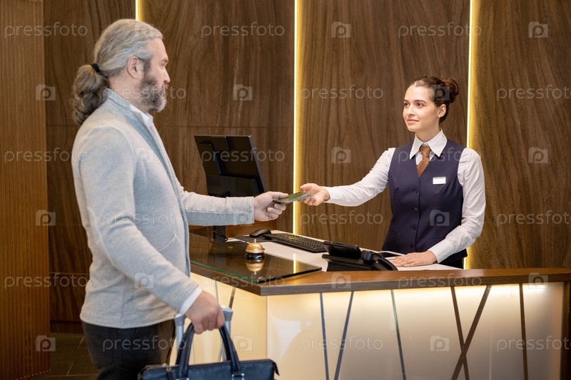 Молодая секретарша принимает документы зрелого мужчины