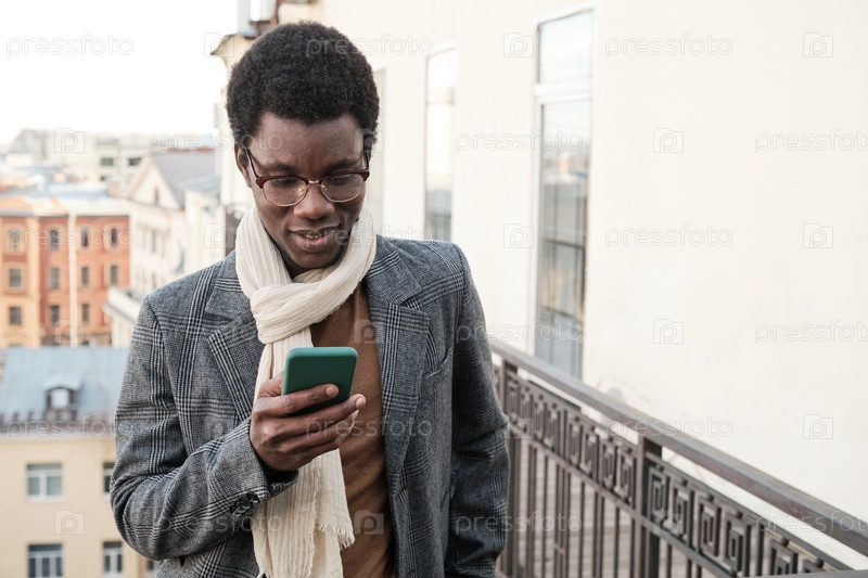 Мужчина читает сообщение на мобильном телефоне