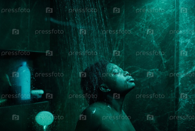Молодая женщина моет волосы