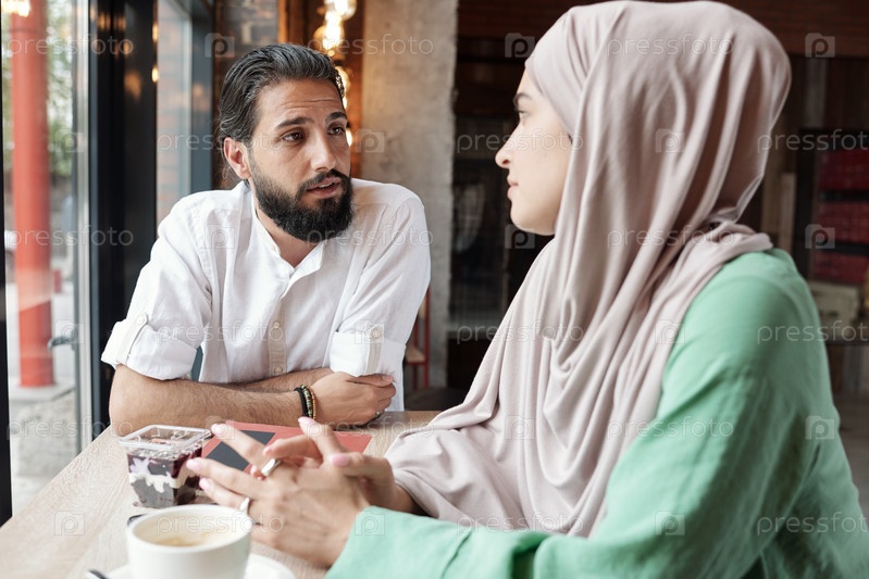 Мусульманская пара в современном кафе